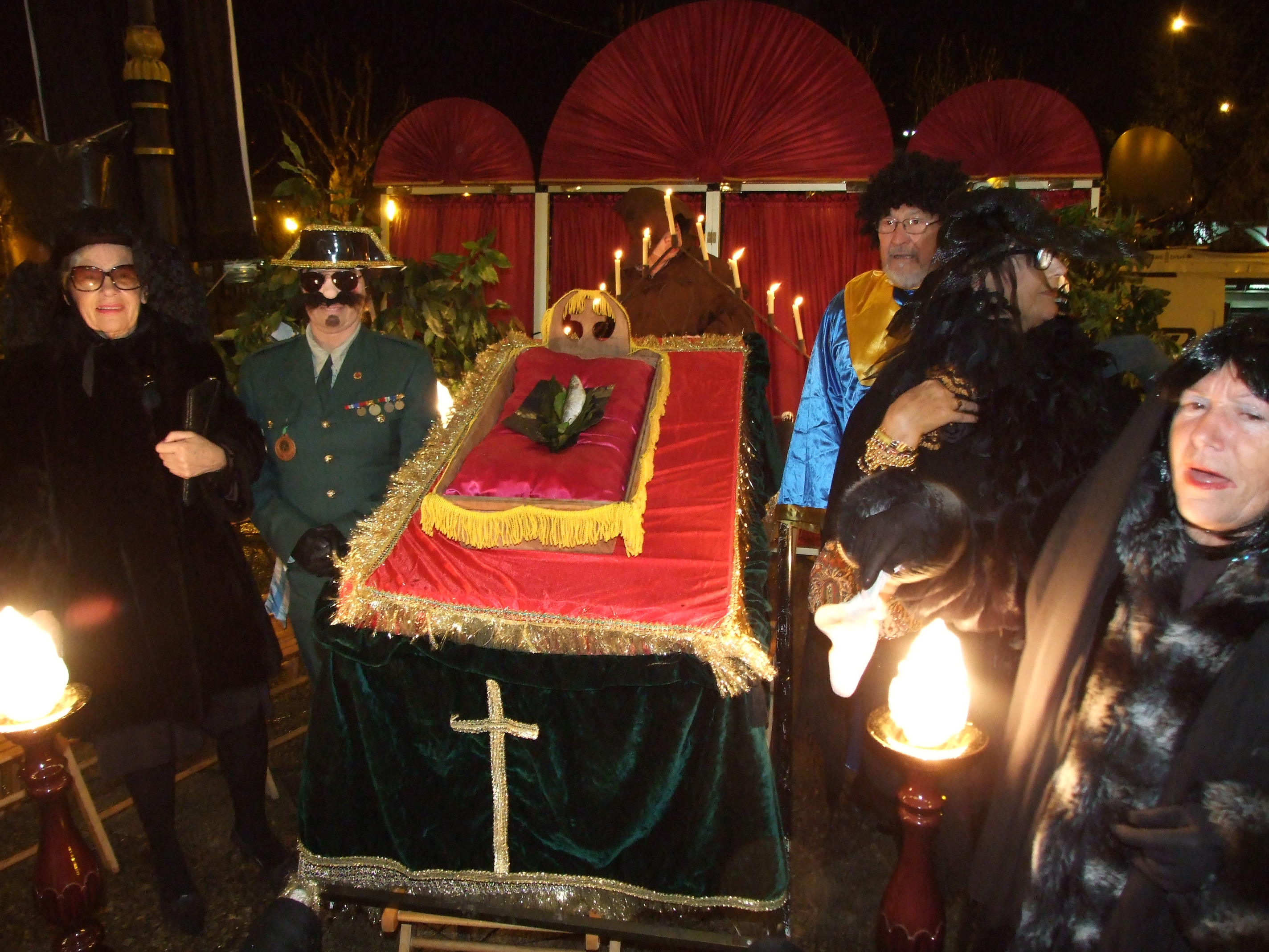El de Marín es un “enterro” centenario que solo se interrumpió en años de dictadura, pero que en cuanto se pudo, el Ateneo lo recuperó manteniendo exactamente su estructura como continúa siendo en la actualidad. Curiosamente, la misma persona que ofició de “Bispo” en el último enterro del 36, antes de su prohibición, fue el mismo que hizo lo propio cuando el Ateneo recuperó la tradición cuarenta años más tarde, Marcelino Liberato, se llamaba, verdadero experto en la parodia que falleció poco después de su recuperación.