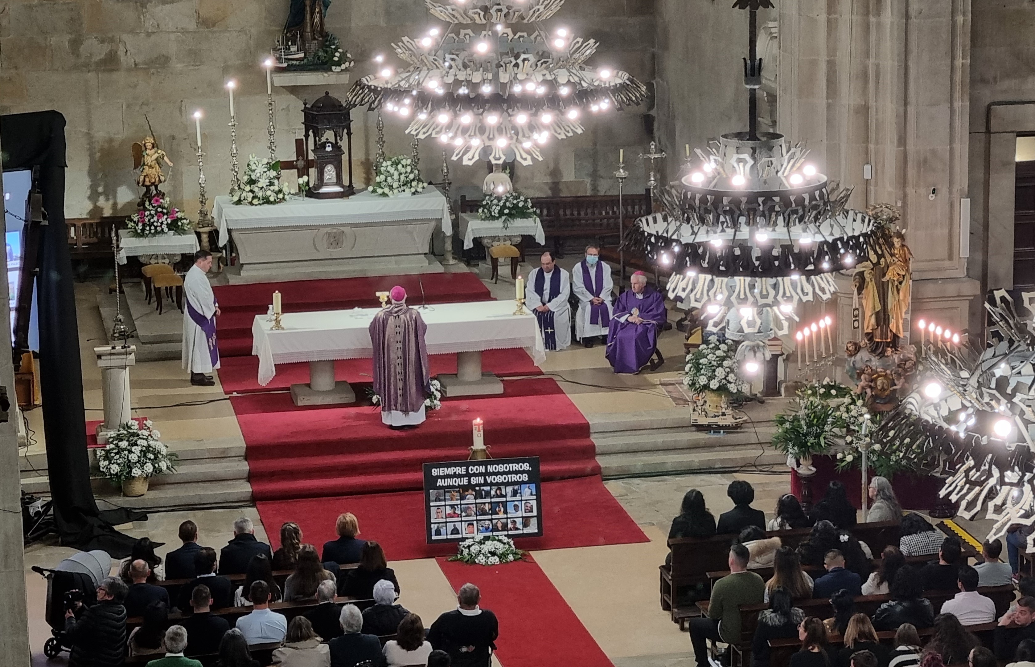 La ceremonia religiosa, que fue seguida con gran respeto por los asistentes, estuvo presidida por el Arzobispo de Santiago de Compostela Julián Barrio Barrio, que contó con la compañía del Obispo de Tuy, quien en el momento de la homilía pronunció palabras de consuelo y esperanza para los familiares de los 21 fallecidos en el naufragio.
