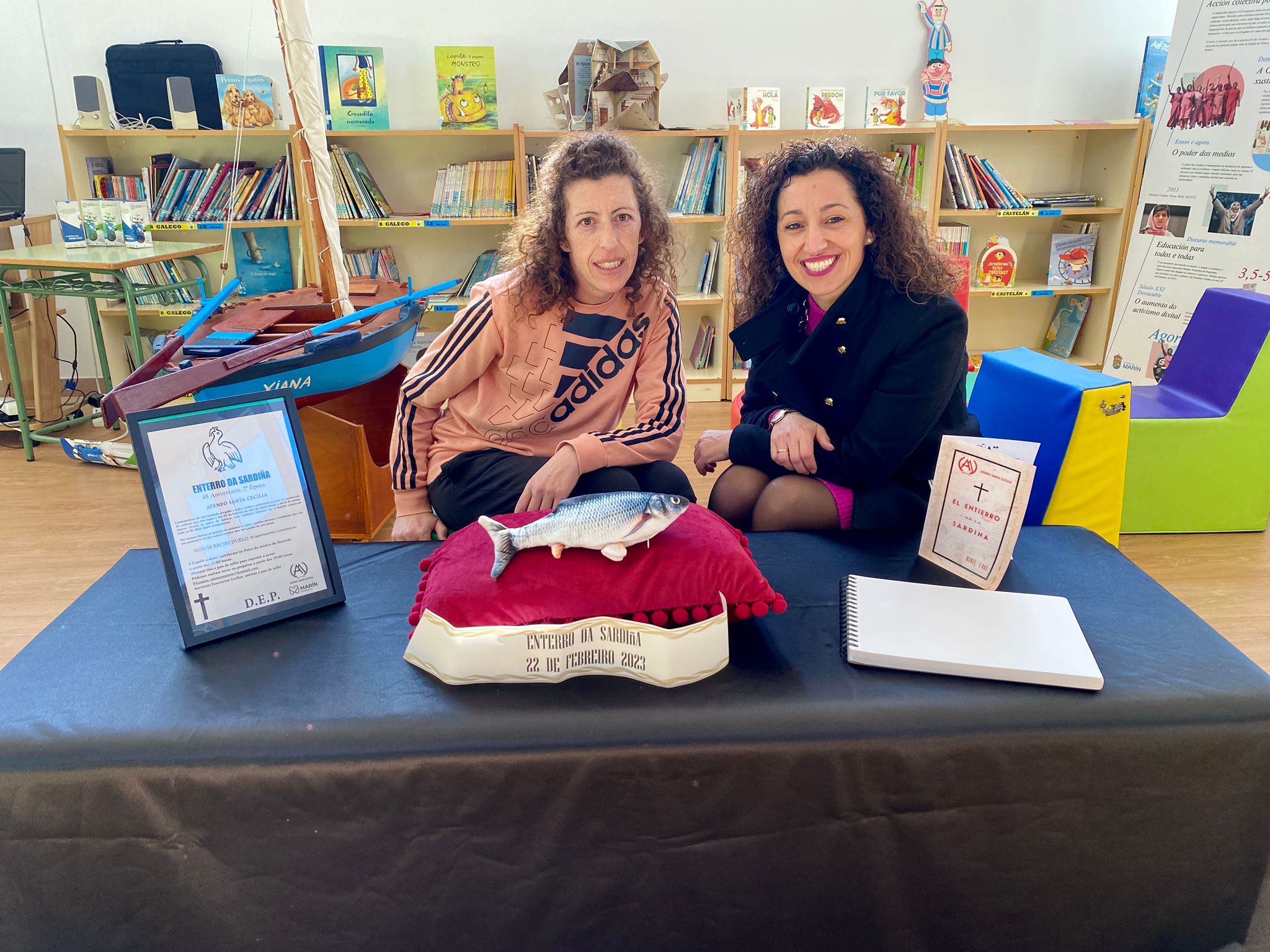 Si recientemente el Ateneo Santa Cecilia ha venido desarrollando una labor de promoción con charlas en algunso centros escolares sobre el significado y la historia del Enterro da Sardiña, ayer fue la concejala de fiestas, Marián Sanmartín la que acercó a los distintos colegios los símbolos de esta singular y genuina fiesta del final del Entroido marinense. La esquela, un ejemplar de la letanìa y desde luego, la reproducción de una oronda sardina han quedado en cada uno d leos centros lo que facilitará a los docentes de los mismos acercar un poco más la tradición a los alumnos.
