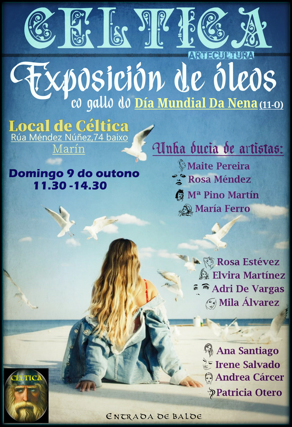 El próximo domingo día 9 la muestra será colectiva porque Céltica quee, en esta ocasión, celebrar el “Día Mundial de La Niña” por lo que ha reunido a una docena de sus artistas para organizar esta muestra en horario de once y media a dos y media, por la mañana con entrada completamente libre.