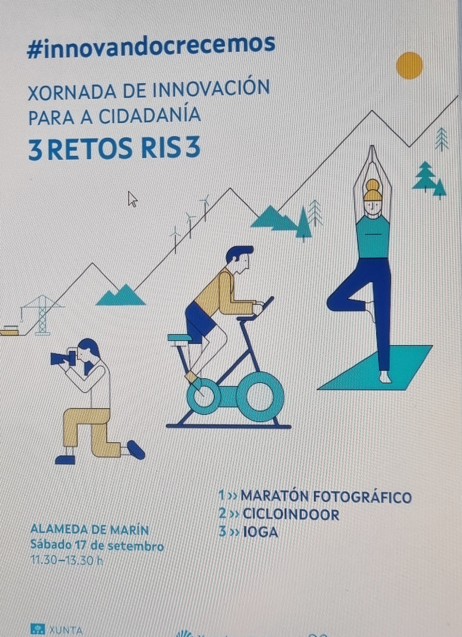 A Axencia Galega de Innovación convoca á cidadanía de Marín a participar na xornada 3RETOS RIS3. A xente pode apuntarse a un maratón fotográfico, a ciclo indoor ou a ioga.