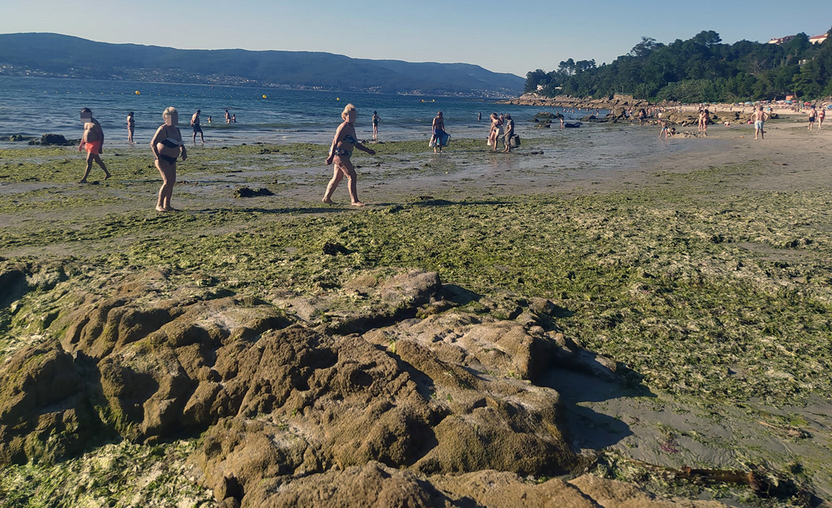 Otra usuaria de esta importante playa marinense nos remite unas fotos en las que se ve claramente la arena de la playa con algas llegadas con las mareas vivas, seguramente, un proceso natural que molesta a los bañistas y todos los años hay quejas por ello.