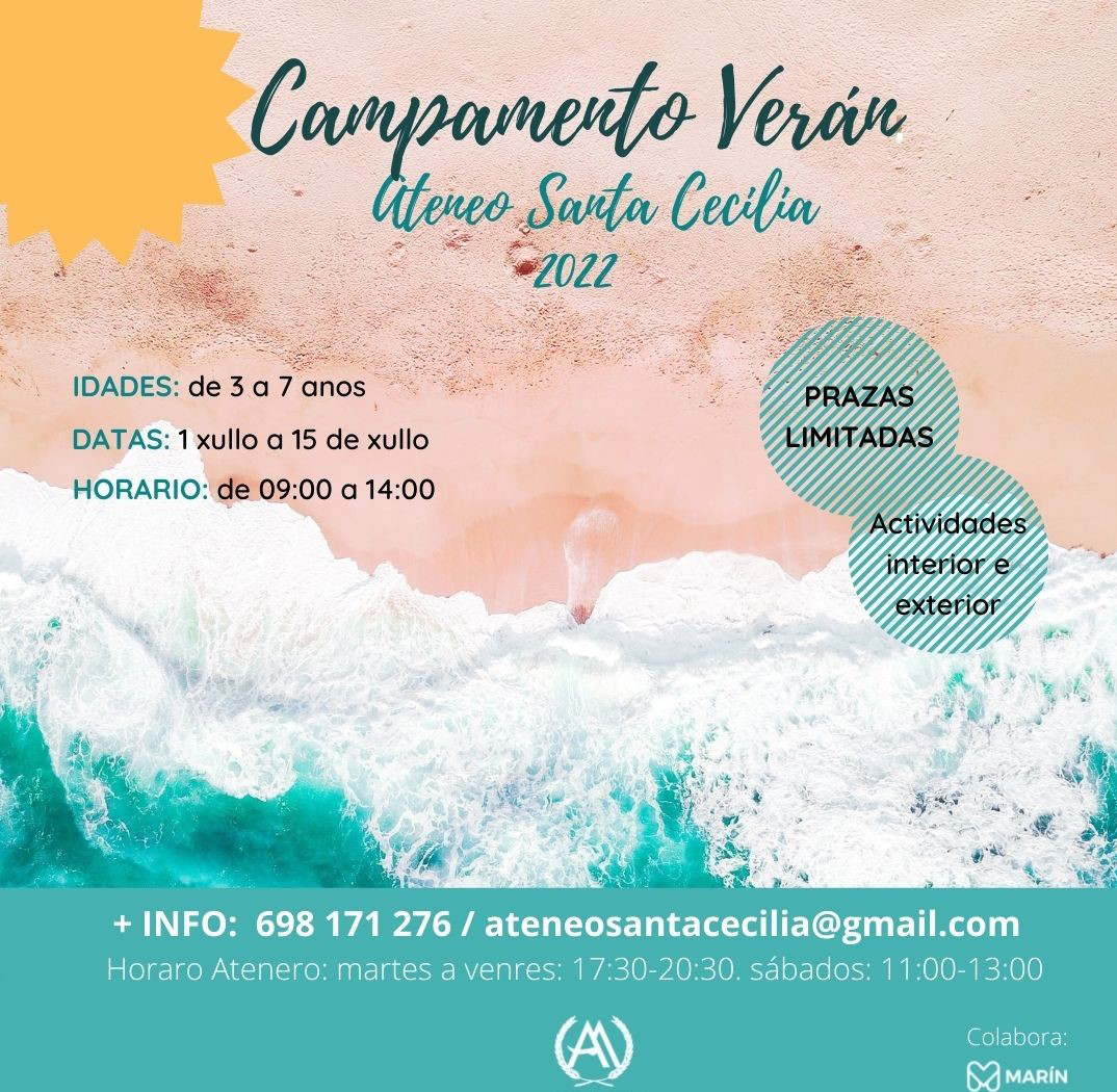La oferta de campamentos de verano para niños y jóvenes en Marín es amplísima en diferente entidades sociales, culturales y deportivas, según hemos ido publicando en Carriola días atrás. Las familias tienen donde elegir y una de las opciones es la que el Ateneo Santa Cecilia abre para edades de 3 a 7 años.