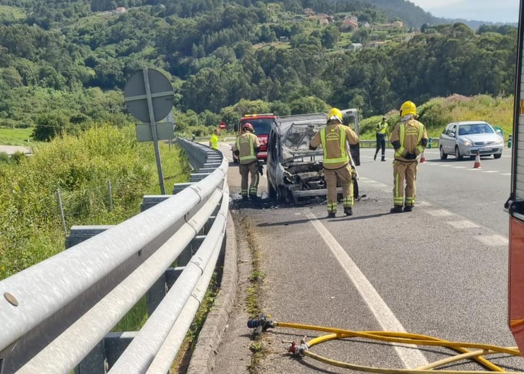 Una pequeña furgoneta se incendió a primera hora de esta tarde cuando circulaba por la VG4.4, la variante de Marín, en sentido Pontevedra y a la altura del cementerio de o Campo. Al lugar del suceso acudieron la Policía Local de Marín, Protección Civil de Marín la Guardia Civil de Tráfico y dos dotaciones de Bomberos de o Morrazo, que trataron de sofocar el fuego aunque no fue posible evitar su destrucción total. No hay que lamentar ningún herido ni daño personal alguno.
