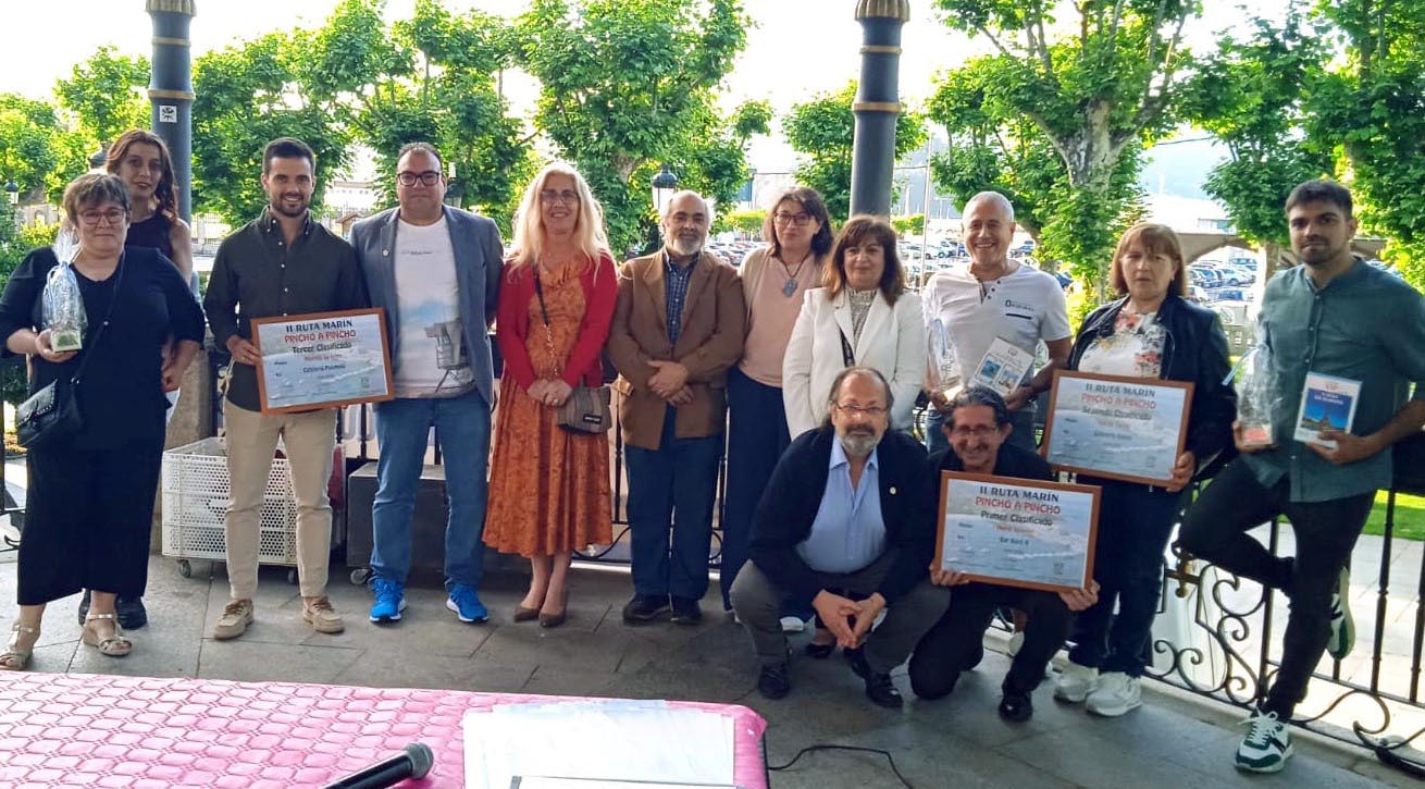 El Palco de la Música de la Alameda “Rosalía de Castro” albergó la entrega de trofeos y diplomas acreditativos, así como los viajes-regalo a los tres primeros clasificados de la II Ruta 'Marín, Pincho a Pincho' que se celebró durante este pasado fin de semana, con participación de catorce establecimientos hosteleros de la localidad, bajo la organización de la Asociación Cultural y Gastronómica Botón de Ancla, que contó con la colaboración del Concello de Marín.