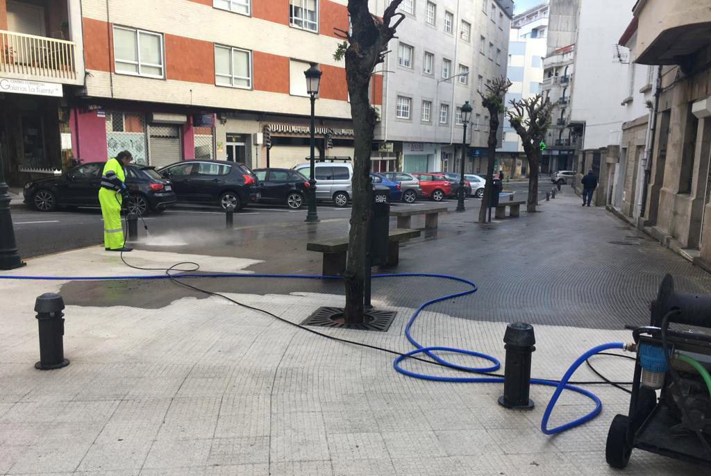 Las zonas de Concepción Arenal y Sagrada Familia donde se celebrarán las fiestas de San Xosé Obreiro dentro de unos días, han sido ya baldeadas convenientemente y, según indican desde el propio concello, se está siguiendo en otras zonas como Inferniño y la Calle Doctor Touriño donde se ubica la Iglesia Evangélica.