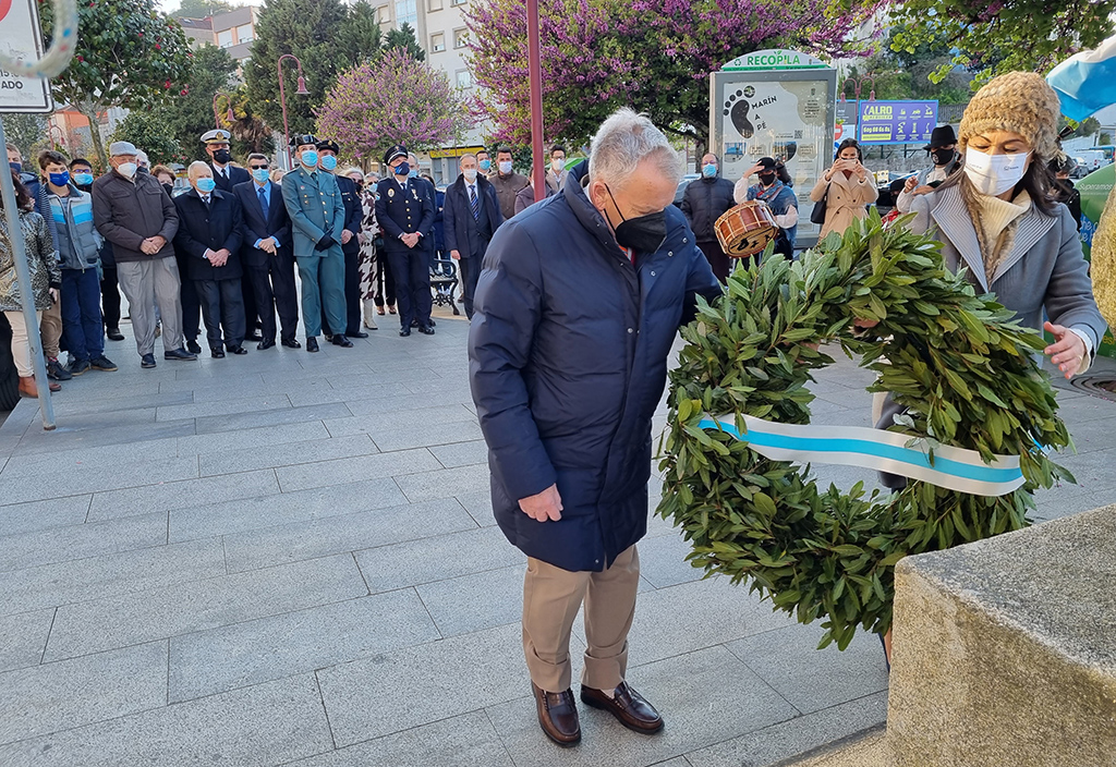 Una nortada de las buenas incidió en el acto de homenaje al corsario y liberador de Marín en 1809, Juan Gago de Mendoza, bajo cuyo monumento se colocó una corona de laurel y se procedió al izado de Banderas, tarea nada sencilla esta vez por el efecto del viento, mientras la Banda de Música de la Escuela Naval interpretaba los himnos de rigor.