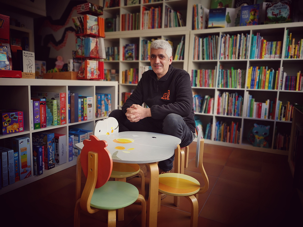 Tiene cuarenta y tres años de edad, y en Noviembre próximo hará 13 años que Bule Bule abrió sus puertas como librería. Poco a poco el negocio ha ido evolucionando desde la venta de libros, juguete y puericultura a aumentar significativamente la presencia de lo segundo y la introducción de calzado infantil en el año 2018. José Carlos Villanueva Santiago nos explica que en principio también organizaban muchas actividades de cuentacuentos, presentaciones de libros y video-discos o talleres de maquillaje de carnaval, pero que fueron dejando un poco de lado estas actividades por la dificultad que tiene un lugar como Marín para conseguir poder de convocatoria.