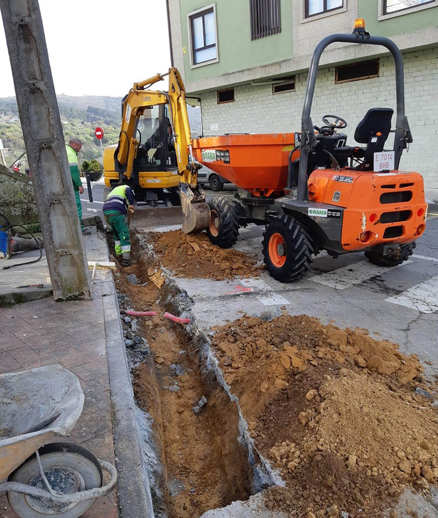 La regidora se reunió a pie de obra con los técnicos de la misma quienes explicaron que “Nestes momentos tense xa executado o 70% dos traballos, aínda que agora queda o tramo máis complexo, xa que se atopou bastante pedra e picala retrasa lixeiramente os labores de instalación da rede, que en total terá 1.670 metros de lonxitude”.