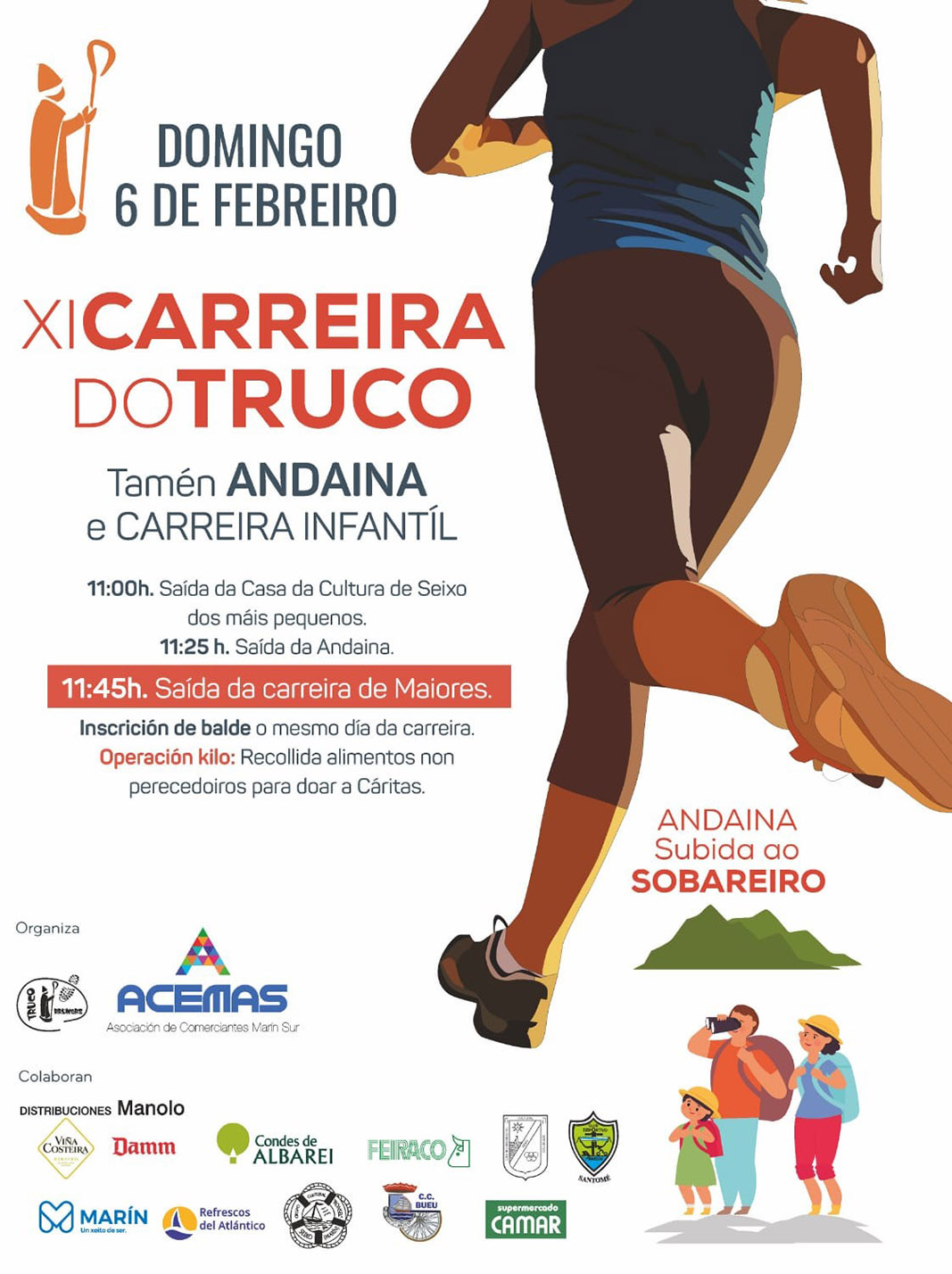 El punto de salida será desde la Casa de Cultura y los horarios previstos son: a las once en punto, la carrera infantil; a las 11,25 la "andaina" y, a las 11,45, se dará la salida a la carrera de adultos.