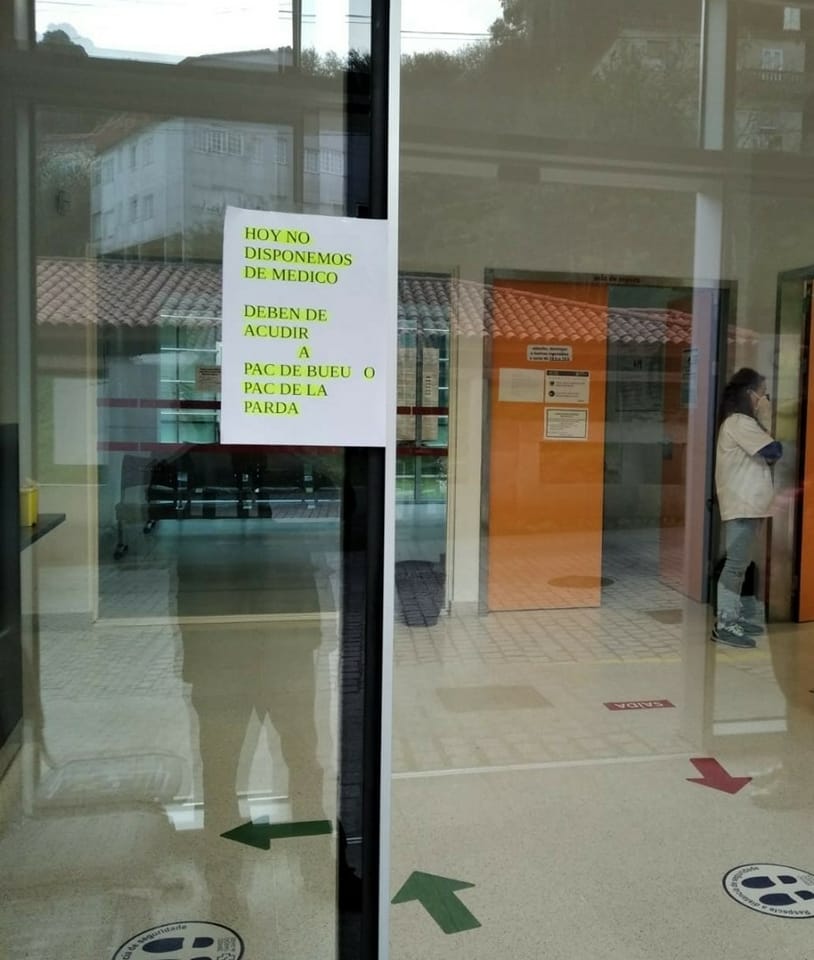 Durante los últimos días se ha producido una situación sanitaria dramática en Marín al encontrarse quienes buscaban auxilio médico en las urgencias con un cartel en la cristalera que les remitía a Bueu o a Pontevedra ya que aquí no había médico que atendiese la consulta.