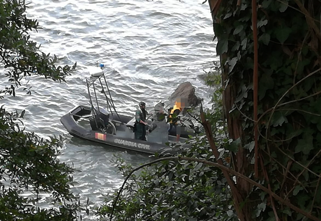 Fue uno de los policías locales quien descendió, arriesgando su integridad física, hasta donde se encontraba el vehículo y sus ocupantes permaneciendo con ellos, seguramente para tranquilizarles tras el agobio vivido. Los bomberos, comprobando los peligros que pudiera haber, y seguramente, la tranquilidad en la que se encontraban abajo accidentados y agente de la Local, decidieron permanecer expectantes en el vial mientras se daba aviso a la Guardia Civil para que realizarán el salvamento por mar, para lo que se desplazó una lancha del cuerpo que soltó una zodiac adecuada arrimándola a las piedras desde las que saltaron los jóvenes que fueron trasladados a la lancha principal.