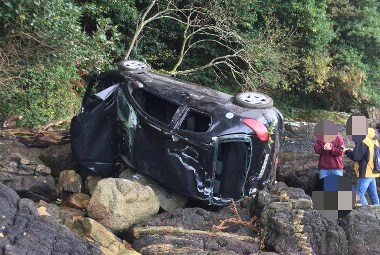 Final feliz y felicitaciones a Policía Local, Guardia Civil, Bomberos de Morrazo, Protección Civil, y ambulancia por su rápida reacción ya que en menos de una hora los chicos estaban a salvo de un coche que quedó destrozado por la caída y que tendrá una difícil recuperación dada la altura que hay desde la carretera hasta donde quedó depositado.