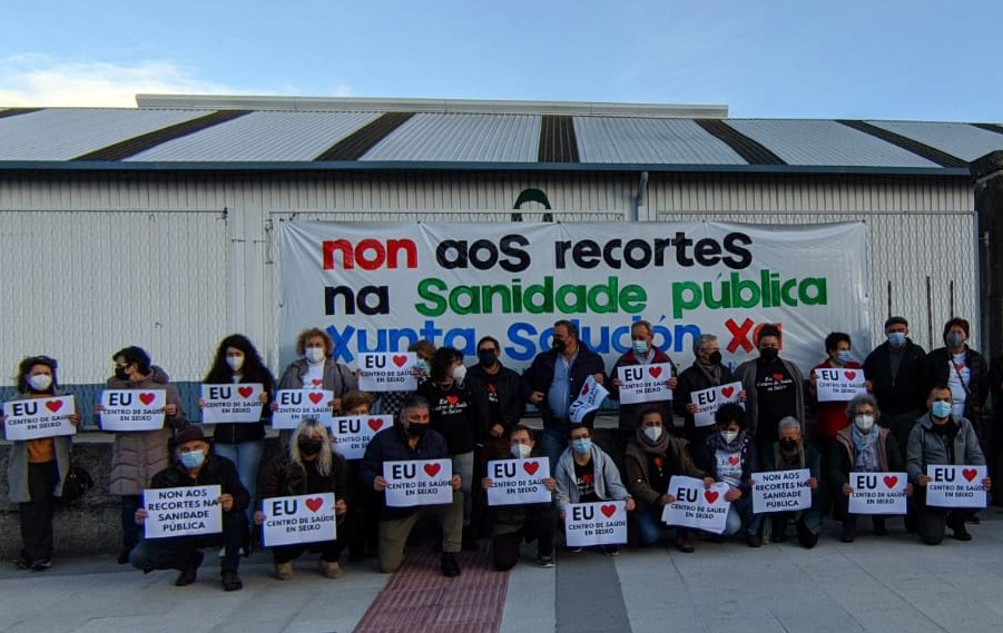 A Plataforma pola Defensa do Centro de Saúde de Seixo, que agrupa a 20 colectivos das parroquias de Santomé de Piñeiro, O Campo, Ardán e Seixo, no concello de Marín, vén de colocar unha pancarta diante do edificio do concello coa que denunciar os recortes na atención sanitaria que sofre a veciñanza e demandar que a Alcaldesa de Marín faga presión ante o seu partido na Xunta.