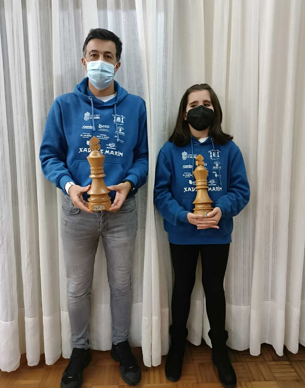 Y el club “Xadrez Marín” desplazó con el patrocinio de “Restaurante posada de Lapamán” a tres de sus jugadores entre los que participaban Noa López Freiría y Miguel Santiago Pereira que, al final del campeonato, subieron al podio, la primera como campeona de la categoría sub-10 demostrando su potencial en este deporte ya que no para de ganar trofeos allí donde se presenta, y el segundo, proclamándose subcampeón en la categoría absoluta. Noa hizo 4,5 puntos y Miguel 6 en el sistema de semi-rápidas con siete rondas y 20 minutos por jugador.
