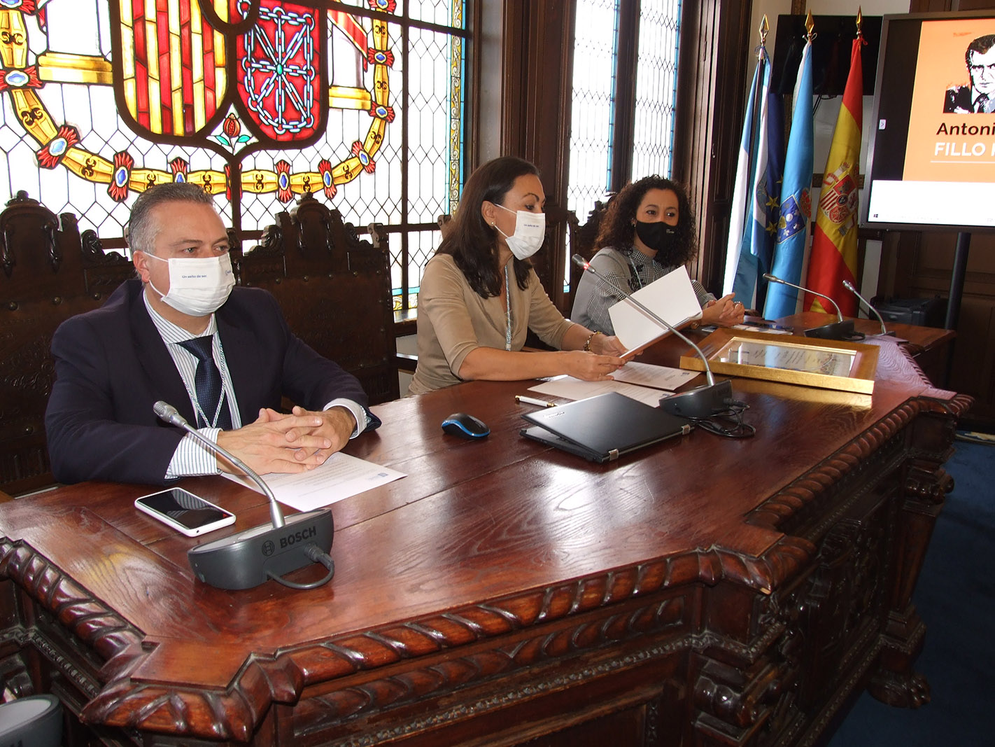 También tomó la palabra Ángel García Carragal como presidente de la entidad que puso la primera piedra del proceso al hacer la propuesta al ayuntamiento en su día como presidente de “Xornadas de Reencontro coa Historia”. García Carragal centró su discurso en recalcar los méritos dicho ya por quienes le precedieron en la palabra y sobre todo en asegurar que Antonio Blanco atesoraba ser al lado de un ciudadano universal y un especial amor por su tierra natal, Marín, de la que nunca se desvinculó a pesar de sus frecuentes y prolongadas ausencias por motivo de sus múltiples responsabilidades y ocupaciones. Agradeció el apoyo que, desde el primer momento, recibió de asociaciones, colectivos, políticos y personas particulares para hacer posible este nombramiento y destacó el interés de la concejala de cultura actual Beatriz Rodríguez, en dar empuje al expediente que ayer culminaba.