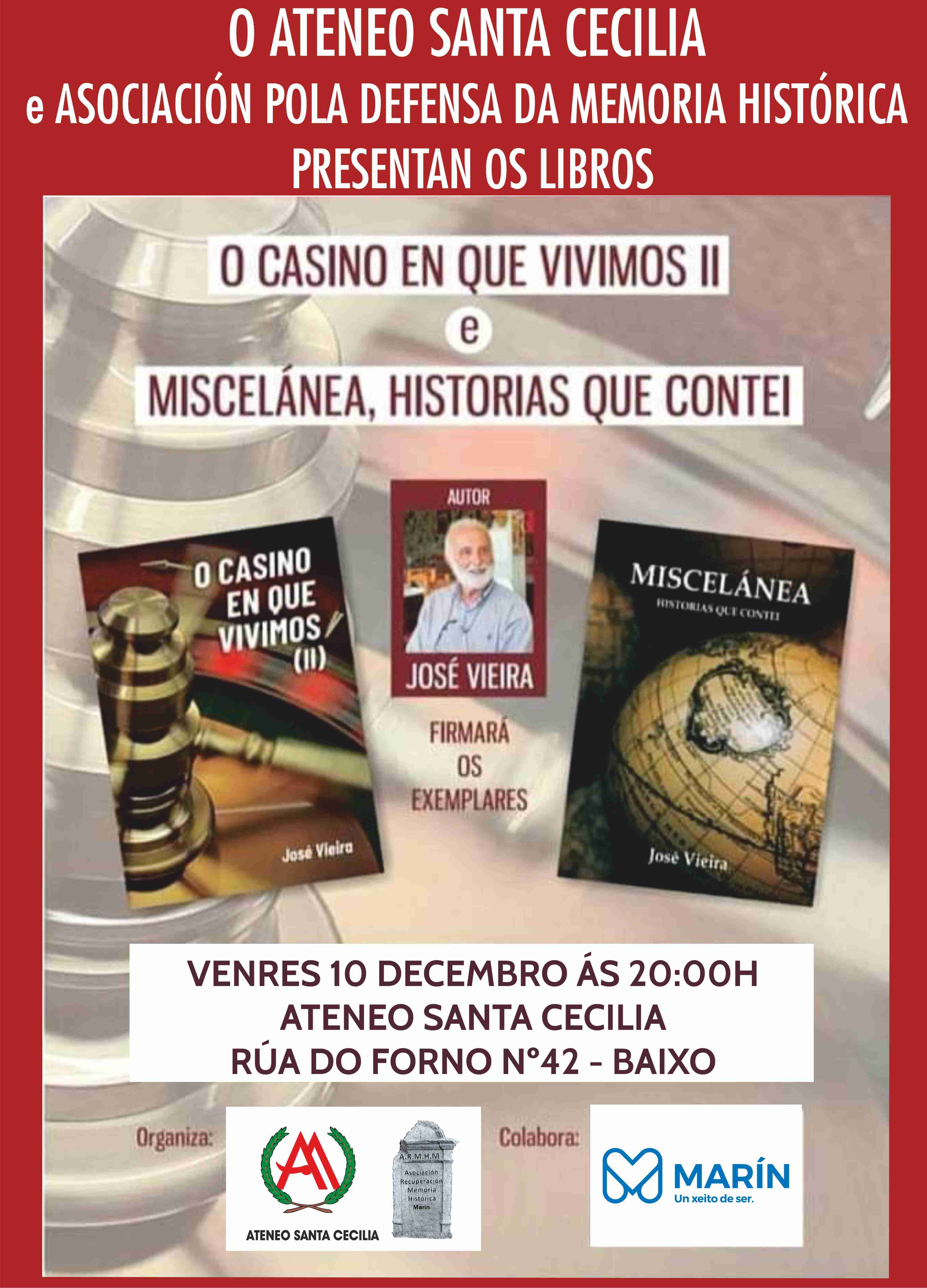 Mañá venres, as oito da tarde, terá lugar a presentación de os ous últimos libros do autor portugués José Vieira resindete en España, particimante na “Revolución dos Cravos do 25 de abril”