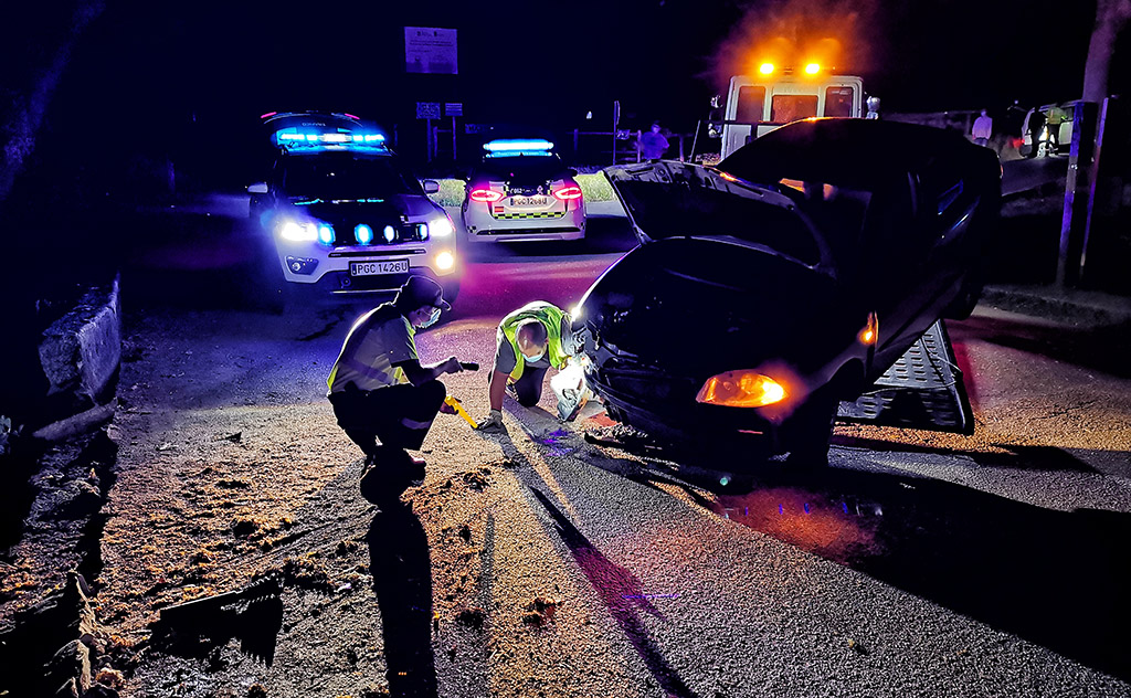 Se personó en el lugar en un primer momento la ambulancia del 061 para prestar auxilio al accidentado, aunque debido a su negativa se marcharon sin hacerlo; posteriormente llegó la Guardia Civil de Tráfico, cuerpo que tiene las competencias en esta carretera provincial, que al percibir el estado del conductor decidieron hacer no solamente la perceptiva prueba de alcohol, en la que arrojó un resultado positivo de 0,63, sino también un examen completo de drogas, resultando también positivo en cocaína y THC. El conductor se enfrenta a sanciones de 1000 euros por cada uno de los positivos, 2000 euros en total.
