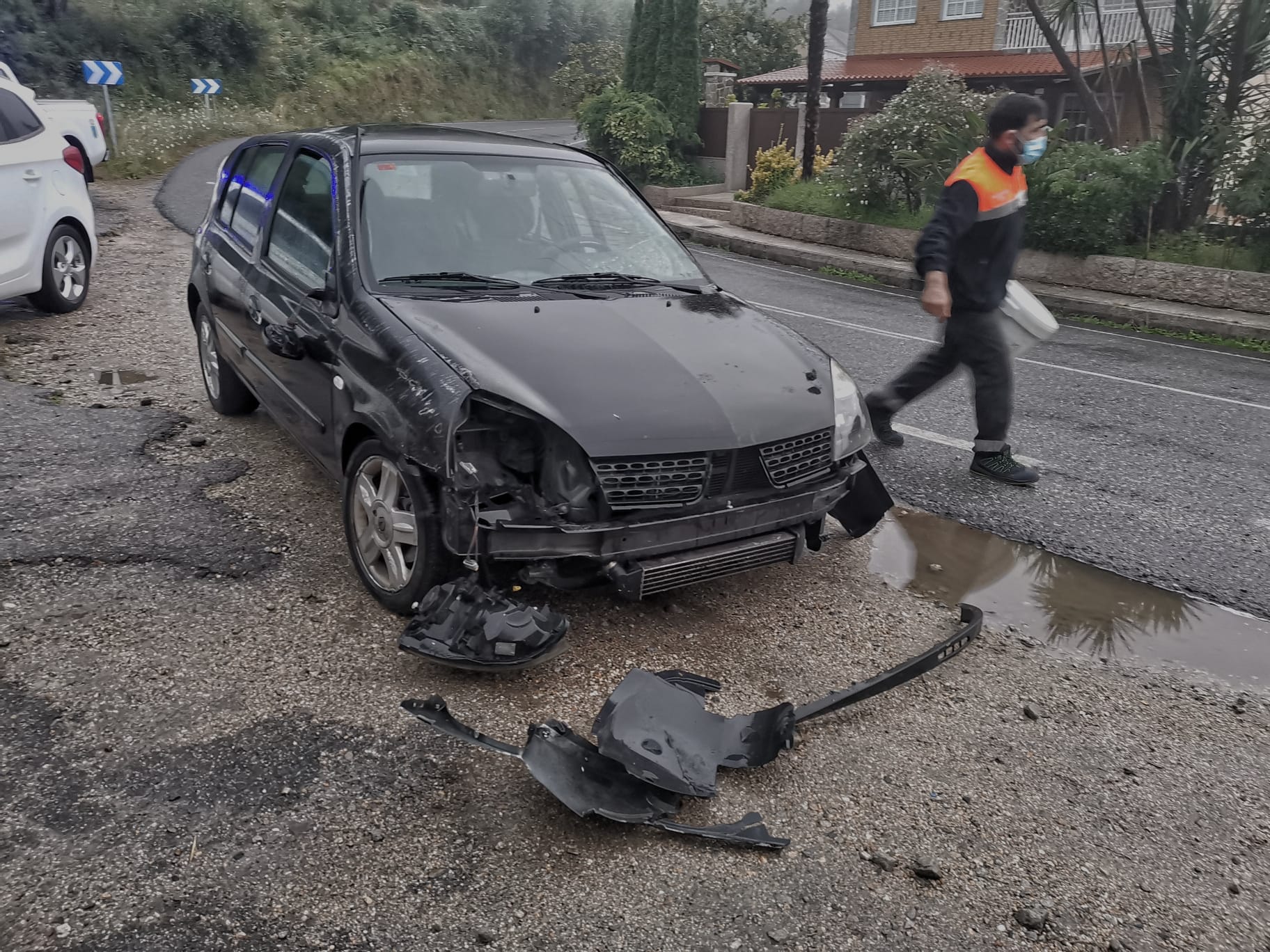 Tercer accidente de tráfico esta tarde en Marín, - segundo en este punto-, con resultado de un herido, por fortuna, de menor consideración, según las primeras estimaciones, aunque el conductor resultó con una herida abierta en un brazo que seguramente necesitaría varios puntos de sutura para contener la brecha.