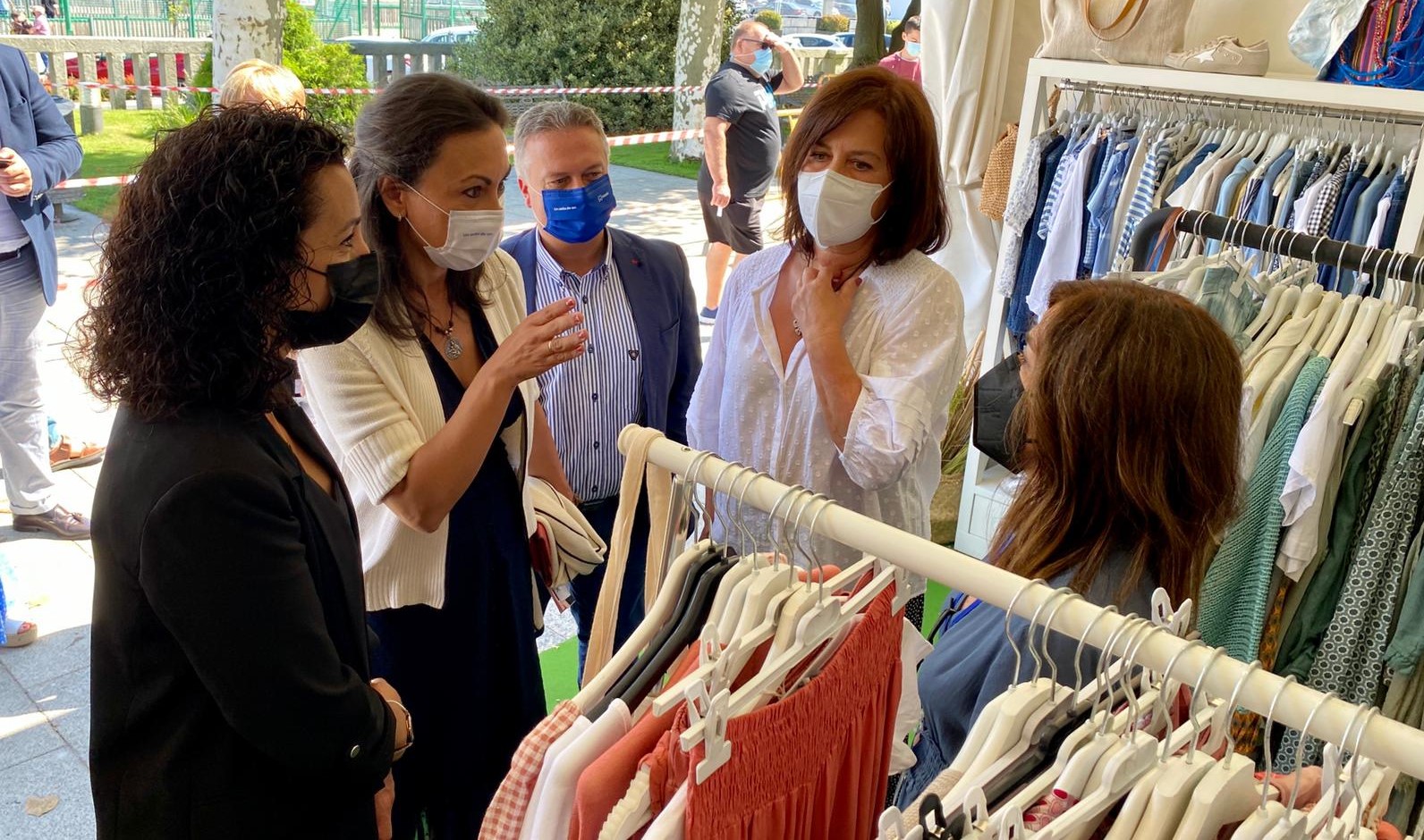 Previamente, a la entrada en el recinto, se produjeron las intervenciones del gerente de la asociación organizadora del evento Jonatan Carreira y de la alcaldesa María Ramallo. El primero empezó agradeciendo el apoyo del Concello que, dijo “Dentro de su plan de apoyo al comercio sufraga los gastos de montaje y de seguridad de la feria en la que hay 23 participantes, todos ellos del municipio que representan a todos los sectores: moda, calzado, menaje perfumería, joyería, cosmética… un poco de todo que ofrecerán hasta un setenta por ciento de descuentos, o incluso más, en algunos artículos”. Carreira aseguró que está perfectamente diseñado el plan de respeto a la pandemia y que se exigirá el uso obligatorio de máscarila, la utilización del gel alcohólico a la entrada, limitándose el aforo a 400 personas que entrarán en el recinto con una tarjeta que se les entrega y que han de devolver a la salida al personal de control existente en cada puerta.