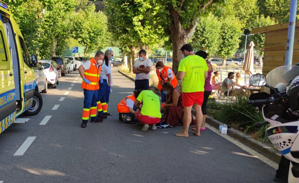 Una llamada telefónica al CIAE del 112 Galicia alertaba alrededor de las siete y media de la tarde de ayer de un accidente en el vial de playas de Marín, concretamente en la playa de Portocelo. Personados los servicios de emergencia en el lugar, - una patrulla de la Policía Local de Marín y una ambulancia del 061-, observaron cómo una mujer de 76 años yacía en el suelo después de, según testigos presenciales del suceso, resultar atropellada por un vehículo Seat León cuando supuestamente cruzaba la carretera por detrás de un turismo que se disponía a aparcar en el vial, justo a la altura del "chiringuito" de la playa.