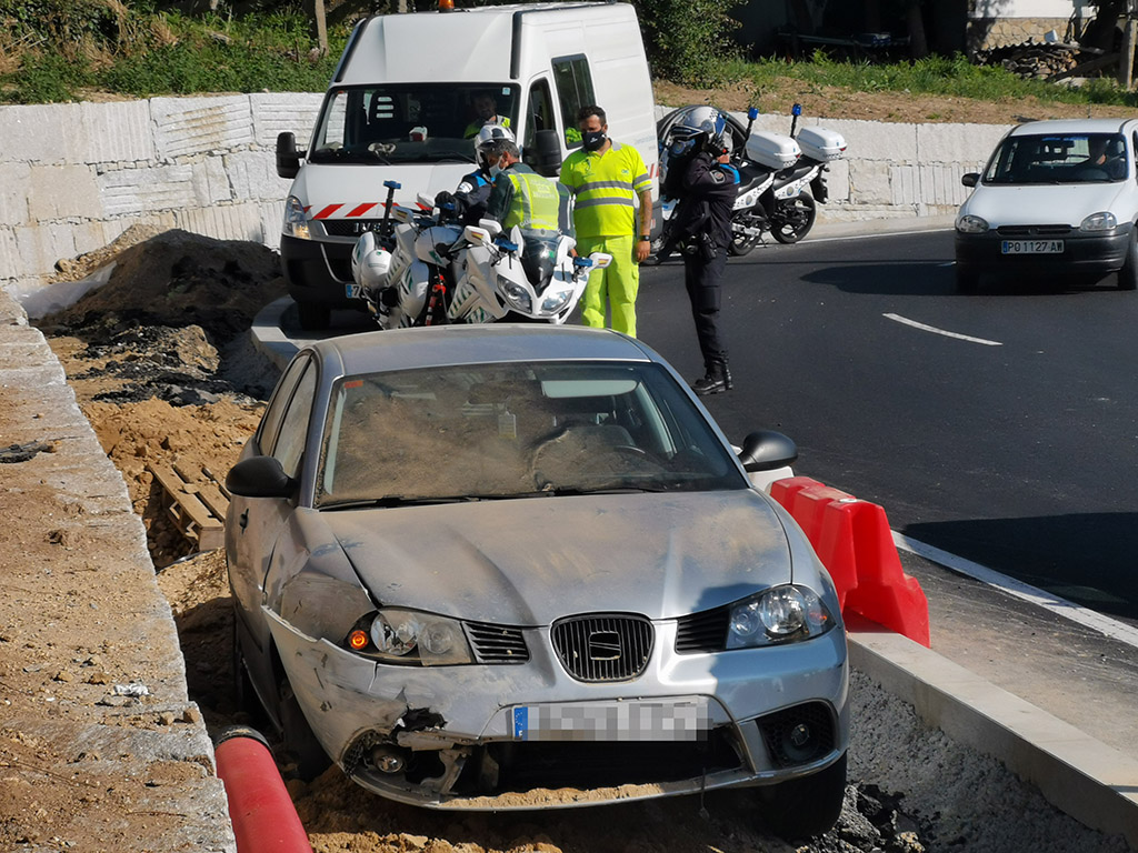 Al accidente acudieron miembros de la Guardia Civil, ambulancia del 061 que trasladó a la conductora, y Policía Local de Marín que se personó en el lugar en un primer momento para controlar la situación y lo abandonó una vez que llegaron los agentes de la Benemérita que se hicieron cargo al ser la zona de su competencia.