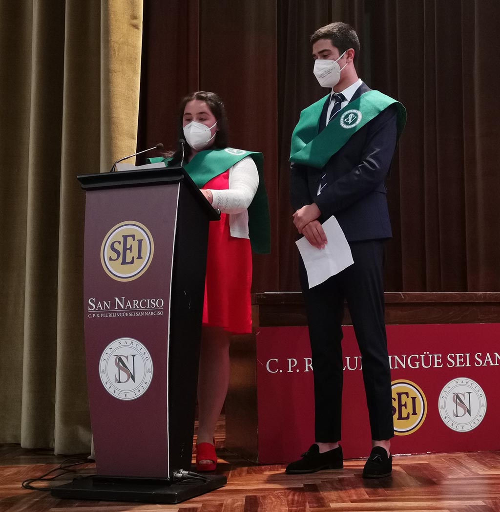 Llegó el turno de las palabras, en el que dos representantes de los alumnos hicieron un pequeño recorrido de todos los acontecimientos vividos en el Colegio San Narciso y agradeciendo de modo especial a sus profesores las experiencias y enseñanzas recibidas. Posteriormente, el director Antonio Traba dedicó su última enseñanza a los alumnos y les ofreció también sus penúltimos consejos, recordándoles que el centro siempre estará a su disposición para todo lo que necesiten y deseando una "buena vida" a todos ellos.