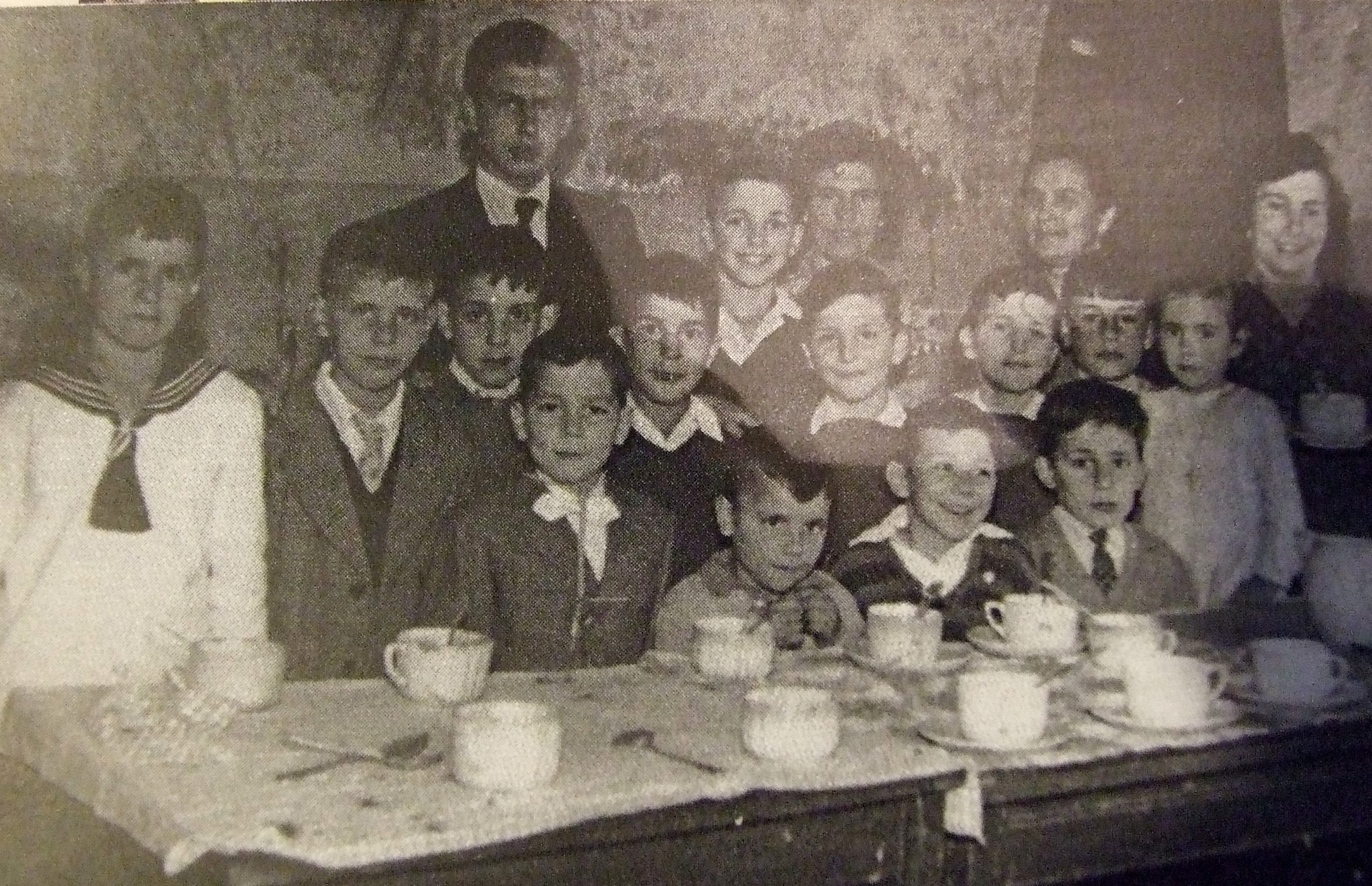Estos chiquillos, alguno muy conocido de la “Rúa da Roda”, acompañan a un comulgando en lo que se consideraba uno de los días más felices de la vida, el de la Primera Comunión. Ahora somos muy descreídos y nos envalentonamos con ello, pero entonces, este acto de la Primera Comunión era todo un acontecimiento religioso para el que niños y niñas se preparaban a conciencia dirigidos por la parroquia o por los colegios donde estudiaban. Varias semanas de explicaciones intensivas y a la toma de conciencia de lo que significaba la Primera Comunión que era el primer paso de la mayoría de edad religiosa, le sucedía el aprendizaje de oraciones y la reflexión sobre pasajes de la Historia Sagrada y se mentalizaba a los comulgandos de que ya iban a ser mayores y que tendrían que mejorar su comportamiento a todos los niveles para estar más cerca del Cielo.