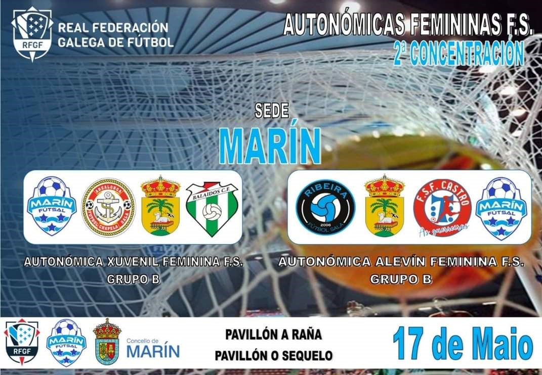El próximo 17 de mayo, Día das Letras Galegas, bajo la organización del Marín Futsal se celebra en Marín la segunda concentración autonómica femenina, en categorías alevín y juvenil de la presente temporada.