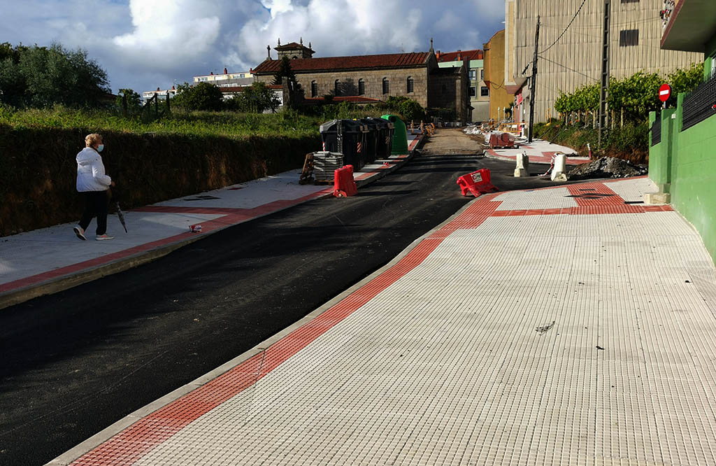 La obra está siendo realizada por la empresa Covsa y ya circulan por la calle algunos vehículos que lo hacen sobre el nuevo firme que sustituyó al anterior la pasada semana. Es una mejora urbanística importante teniendo en cuenta que el “Camiño Vello” es una de las principales vías alternativas a la Doctor Ulloa que viene siendo en realidad la carretera general entre Marín y Bueu.