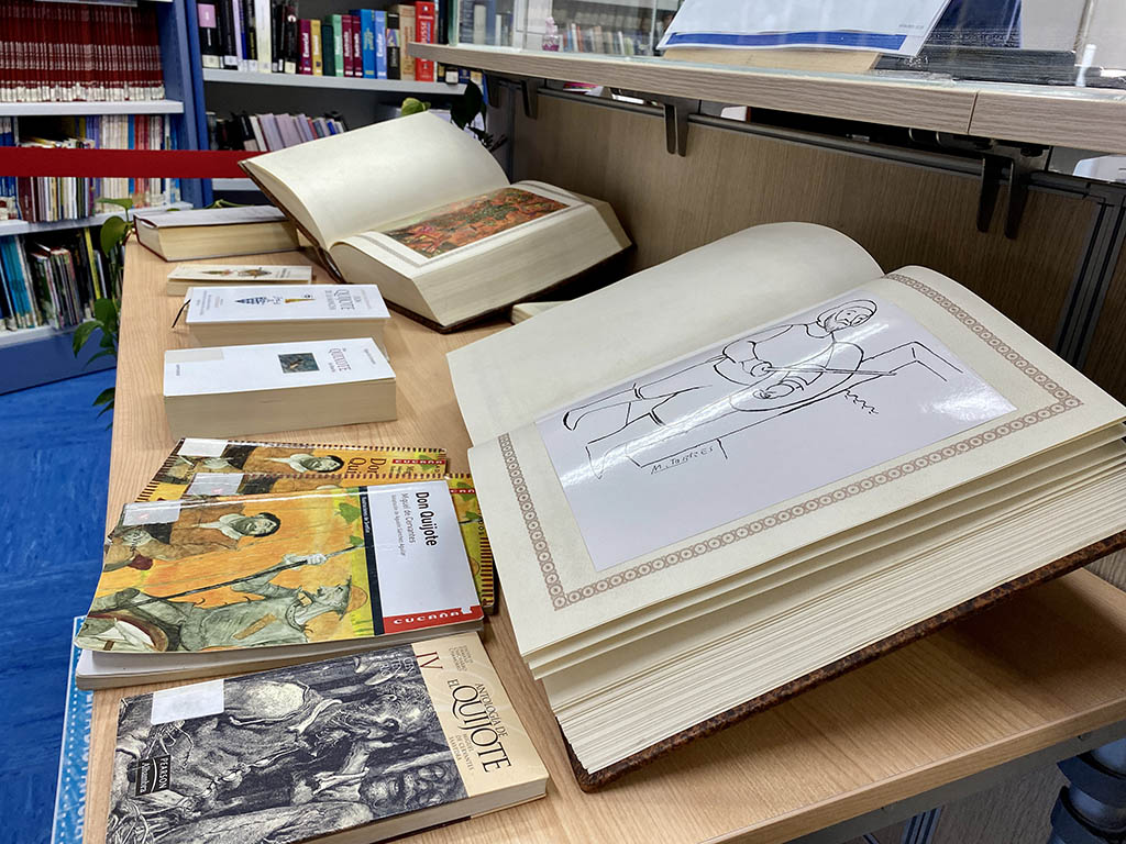La biblioteca de Marín quiere sumarse a esta celebración cultural y, como reclamo, expone los dos tomos de un “Don Quijote de la Mancha” de una edición especial de la que se editaron tan solo 350 libros en la Junta Editorial en el año 1991.