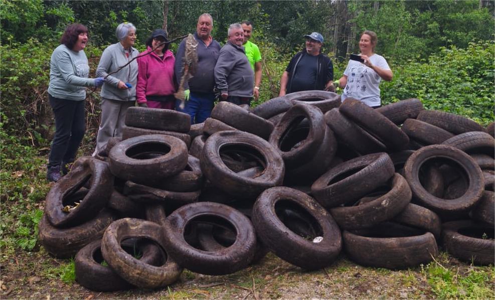 “Asociación de Veciños de Monte Castelo” y la “Comunidade de Montes de Ardán” con una encomiable iniciativa para retirar los neumáticos de donde se encontraban y así evitar la contaminación que ello produce , contando con la colaboración del Concello que se encargó de gestionar el traslado a un vertedero autorizado.