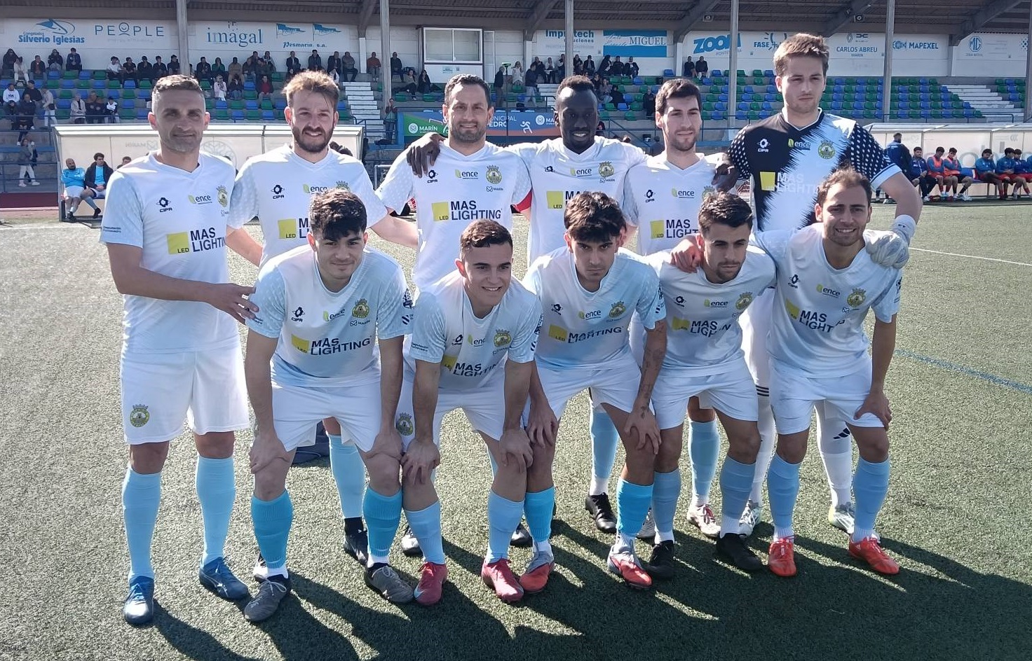 Marín Club de Fútbol : Marc ; Alex Pacheco ( Pablo Pereira , min. 76 ) , Angel García , Aitor Díaz , Osky ( Nico , min. 73 ) ; Jacobo Millán ( Pablo Barrio , min. 73 )  , David Veiga , Alex Rey , Joaco ( Pedro Espiña , min. 53 ) ; Javi Pazos y Sylla ( Guille , min. 53 ) .
