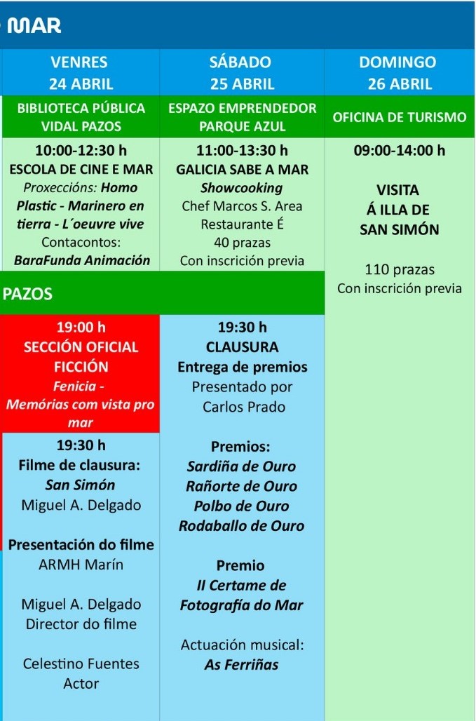Reproducimos la imagen del programa de la recta final del Festival Cine do Mar, después de la jornada de hoy, viernes , sábado y domingo