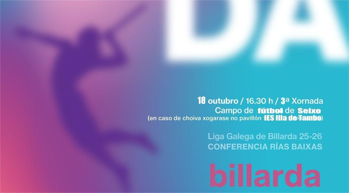 El campo de fútbol e Seixo acogerá esta tarde, desde las cuatro y media, una jornada de la “Liga Galega de Billarda” Conferencia Rías Baixas, en la que participa el equipo marinense del club Gharaboto.
