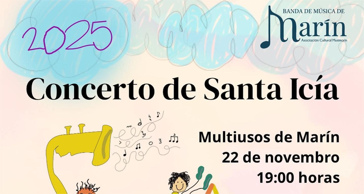 A las siete de la tarde se iniciará en el multiusos del mercado un concierto ofrecido por la Banda de Música de Marín que, bajo la dirección del maestro Eduardo González, celebra de este modo el día de la Patrona de la Música “Santa Icía”.