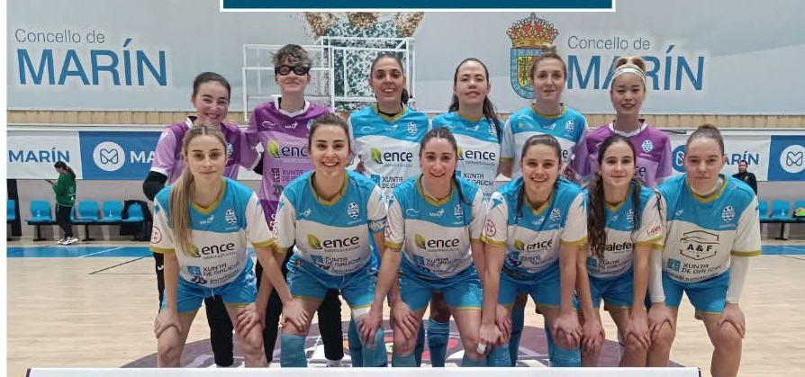ENCE MARIN FUTSAL: Yuri Suto, Ceci, Thais, Paola y Cárol Agulla, cinco inicial, Anna Shulha, Bibi y Pili.
