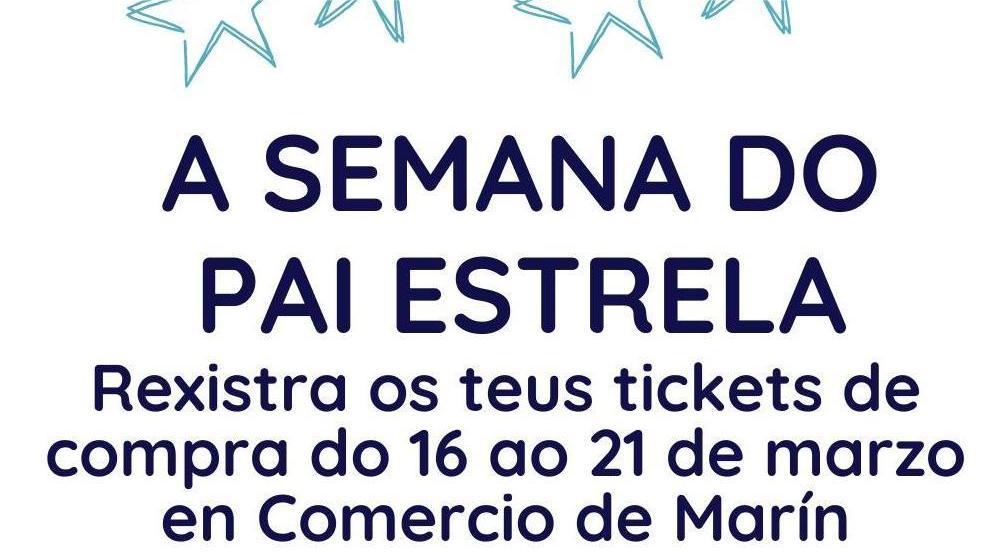La Asociación de Comerciantes “Estela de Marín” tiene abierta una campaña promocional, cofinanciada por la Xunta de Galicia, desde ayer lunes y hasta el próximo día 21 en lo que se denomina “A Semana do Pai Estrela” con la que se quiere premiar a los clientes que muestran su fidelidad al comercio local mediante el sorteo de vales compra en tarjeta regalo que se efectuará el próximo día 23 de marzo.