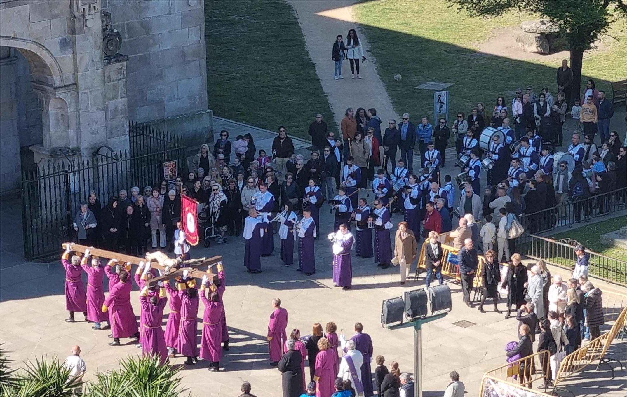 al nuevo templo con la participación de la banda de cornetas, tambores y gaitas “Xente Nova”que tuvo una importante participación en los actos celebrados y, a las doce, tras la llegada a su destino, se realizó el acto del Alzado de la Santa Cruz quedando todo dispuesto para los Santos Oficios por la tarde que contienen el emotivo acto del
