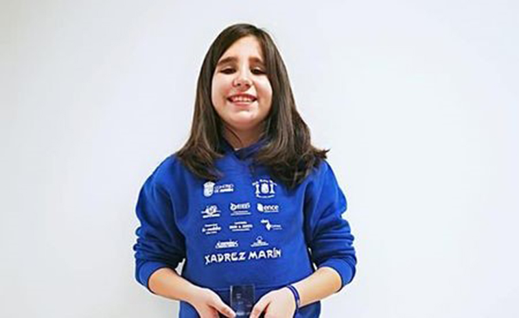 Se llama Noa López Freiría y pertenece al “Xadrez Marín” formando parte del equipo sub-10 “Alaia Pilates”. No es la primera vez que reflejamos en Carriola de Marín sus triunfos ni, seguramente será la última y hoy tenemos la satisfacción de publicar su nuevo triunfo, esta vez en Ferrol, a donde fue a competir en un torneo de ajedrez “rápido” jugando contra rivales de todos los niveles y, de las siete partidas sumó tres puntos que le dieron la victoria sobre todos los demás lo que la puso en el primer puesto de su categoría. En el Xadrez Marín siguen teniendo todas las esperanzas en esta chiquilla que tiene un futuro espectacular a poco que siga preparándose de la mano de sus monitores en el club que preside Miguel Santiago.