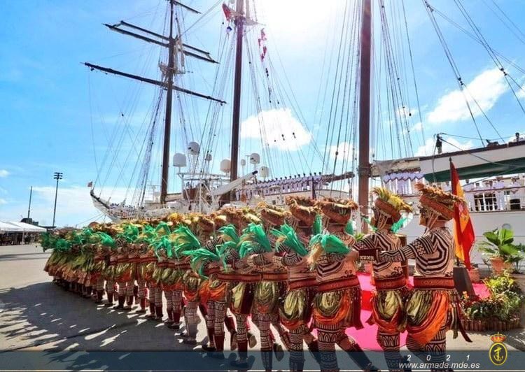 A la llegada del buque, que estará acompañado en el Muelle por el BAA “Galicia”, el Almirante Jefe de Estado Mayor de la Armada recibirá a bordo a las diferentes autoridades civiles. Durante el crucero de instrucción, el buque ha completado su XI vuelta al mundo con motivo de la Conmemoración delV Centenario de la Primera Circunnavegación de la Tierra, teniendo ocasión de recalaren losmismos puertos a los que arribó la expedición de Magallanes y Elcano hace 500 años, tales como San Julián (Argentina) y Punta Arenas (Estrecho de Magallanes, Chile) en octubre; Guam (Marianas, EE.UU), Samar y Cebú (Filipinas) en marzo y Ternate y Tidore (Islas Molucas, Indonesia) en abril. Con motivo de la situación provocada por la pandemia de la COVID, la dotación del Buque[1]Escuela se ha visto obligada a mantenerse confinada a la llegada a cada puerto, lo cual ha