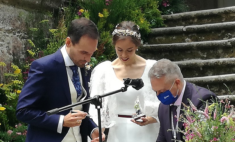 La ceremonia realizada con gran brillantez y momentos de notable emoción, fue oficiada por el teniente de alcalde de Marín y Diputado en el Parlamento Gallego, Manuel Santos Costa quien, previamente a la declaración del compromiso mutuo entre Manuel y Virginia les dirigió unas emotivas palabras de consejo y felicitación por la decisión que estaban tomando en aquel momento.