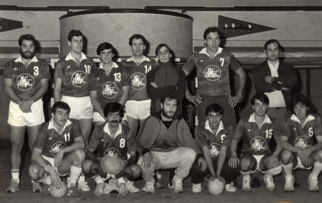 Pues hoy vamos a dejar aquí esas dos imágenes de cuando nuestro especialista gastrónomo, desprovisto de los kilos suficientes que le permitieran hacer esos “fly” dobles, vestía de corto en las canchas de balonmano.A ver si nuestros seguidores logran encontrarle en ambos grupos.