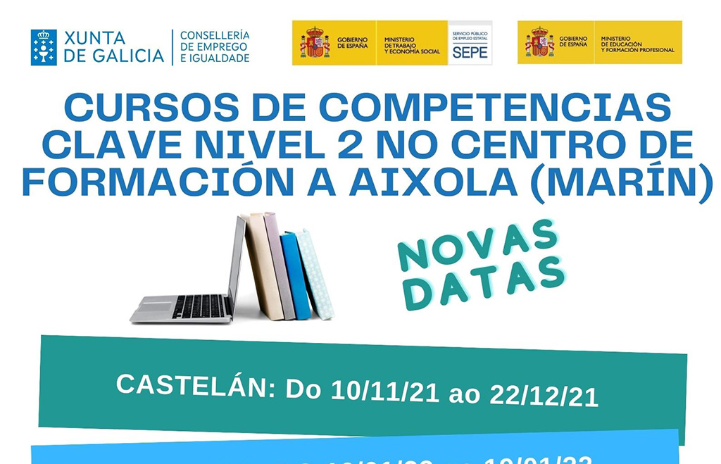 Una nueva modalidad de cursos ofrecidos a personas en el paro o a quienes están ocupadas pero estén dadas de alta en “mejora de empleo” en el INEM, se ofrecen en el Centro de Formación “A Aixola” ubicada en el interior el Puerto de Marín, edificio próximo a los astilleros de Nodosa. Se trata de formación perteneciente a la convocatoria AFD de la Conselleria de Emprego e Igualdade dirigida, prioritariamente, a personas en esa situación de desempleo.