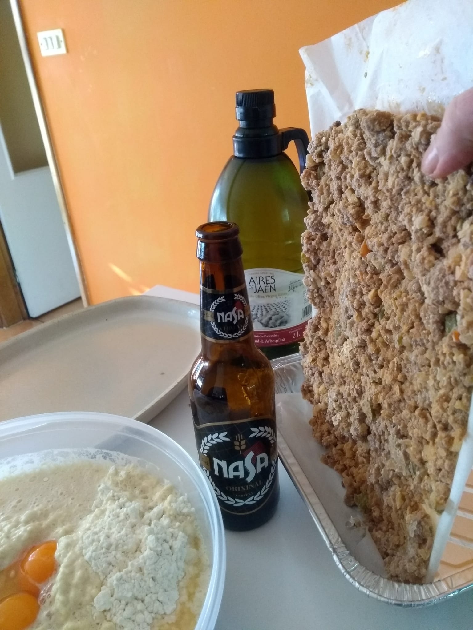 Los ingredientes para la elaboración de cualquier masa se basan en agua, harina y levadura. Después, todo lo que quieras poner, pero esos son los básicos. Hoy os voy a pasar una receta en la que, en lugar de esos tres ingredientes, lo dejamos en sólo dos: el líquido y la harina. En lugar de agua y levadura, vamos a utilizar una cerveza “Nasa” original, que se produce en Pontevedra y que se puede encontrar en cualquier supermercado.