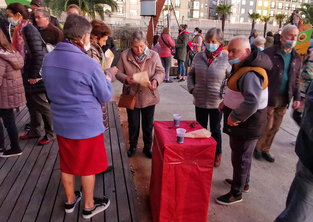 Ramón Castro y sus compañeros de la asociación se mostraban muy satisfechos por el éxito sin precedentes de esta fiesta que les anima a mantener el evento en su programación. “Para nós é moi satisfactoria a resposta do pueblo que está aquí con nós e para o que organizamos varias cousas no ano como por exemplo os talleres de pesca e navegación básica para os rapaces de Marín, actividade da que estamos moi satisfeitos”- manifestó Castro quien no se olvidó de agradecer al concello de Marín la colaboración para celebrar o magosto e en xeral para as actividades que se fan, como tamén a ENCE que acoge en su programación social los quehaceres de TENLO. “Sin esas axudas e sen o empeño dos nosos socios en facer ben as cousas, non poderíamos fecer nada disto”- declaró Castro a Carriola de Marín mientras revolvía el aguaardiente de la exquisita queimada preparada para rematar la jornada.