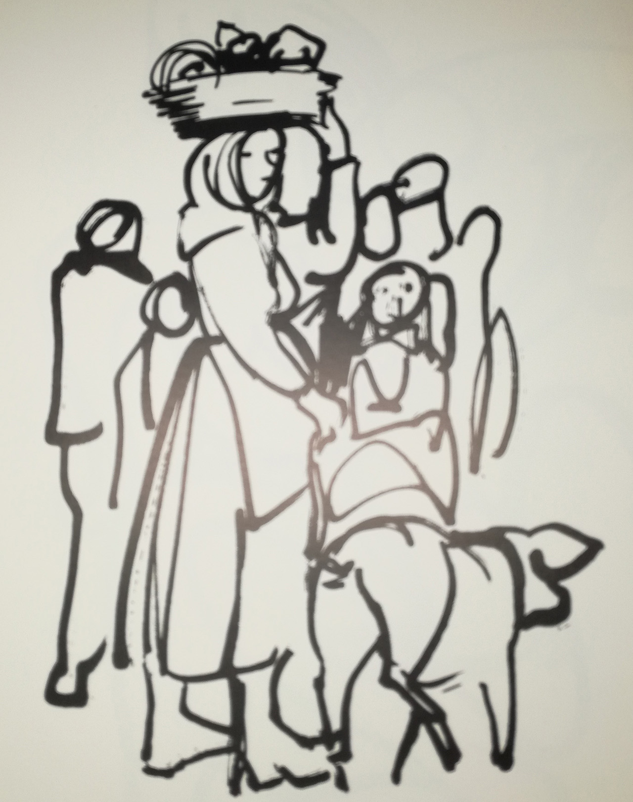 Nada que añadir. Quienes conocen la obra de Manuel Torres, no necesitan de este recorrido por las rúas marinenses propuesto por quien esto suscribe. En todo caso, diría que el olor, el rumor penetrante por los sentidos oportunos, le faltarían a ese paseo virtual. Sus cuadros no son otro asunto que recorrer esta Banda do Río, cuando lo era: tipología de la vivienda, con sus colores, sus brillos, sus luces. Sus embarcaciones balanceándose con la ida y venida de las mareas. Las pescantinas trayendo y llevando sobre su “molete enteiro servilletado” el preciado fruto del mar aún vivo. Manos, miradas, arrugas, vestimentas que llevan en sus mandiles el rumor y el olor del mar. Calles, plazas, rúas hechas de mar y de habla marinense, batir de remos y redes a orear.