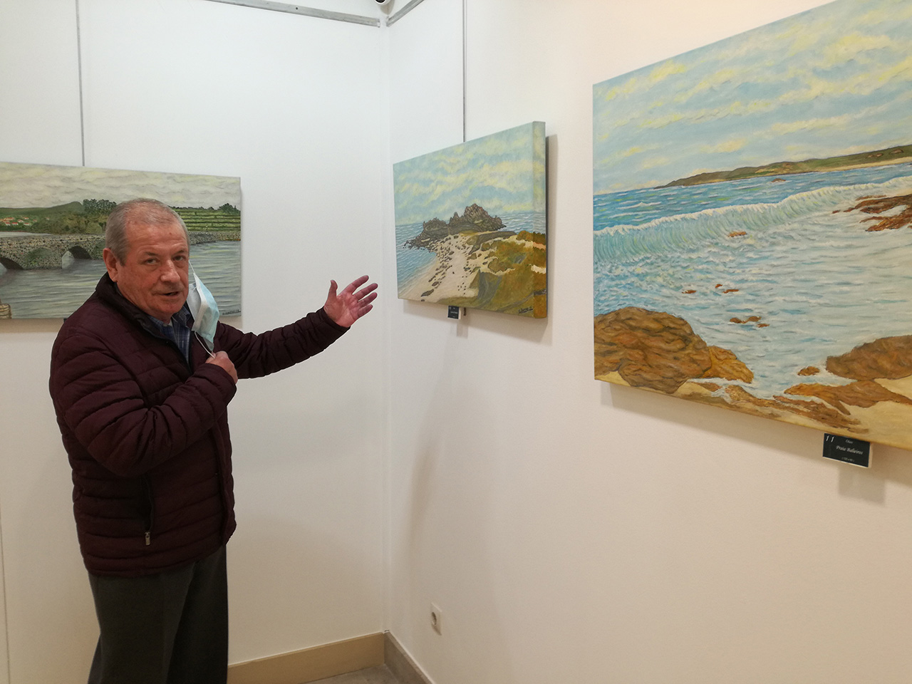 Barros es sincero cuando reconoce alguna carencia. Asegura que el retrato no es lo suyo “Lo hago, pero no disfruto con los resultados”- nos dice- En cambio, quien visita su muestra, reconoce en cada cuadro sus trazos personales “Soy autodidacta pero baso mi obra en aquellas enseñanzas que recibí de quien sabía mucho y en mi propia ilusión. Me pongo a pintar lo que la cabeza y la inspiración me señalan en cada momento y, como puedes ver en esta muestra de ahora, aquí hay variada temática para gustos: paisajes, construcciones y cuadros de inspiración propia con muchos recuerdos del Marín de mis tiempos de juventud que era muy distinto”.