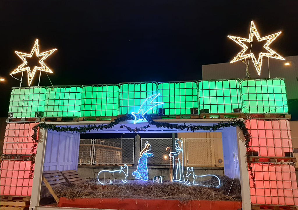 Chicho Montoto y sus colaboradores con la ayuda del Concello, han colocado en Cantodarea, a la entrada en Marín por la Avenida de Orense, un árbol de considerables dimensiones y un portal de Belén que, como el año pasado, albergará las figuras luminosas del Misterio. Serán detalles de recibimiento de quienes lleguen a Marín por esa vía que conectarán con la iluminación de la Avenida de Orense y la Plaza de España que, con el enorme paraguas de leds instalado, que recordará a los que en los años sesenta se ponian para las fiestas de verano con bombillas de colores, será el punto álgido del lucerío que dará ambiente y alegría al pueblo acaso en un momento en que vuelve el temor al virus por el aumento de los contagios que habrá que tener en cuenta para todo el programa navideño.