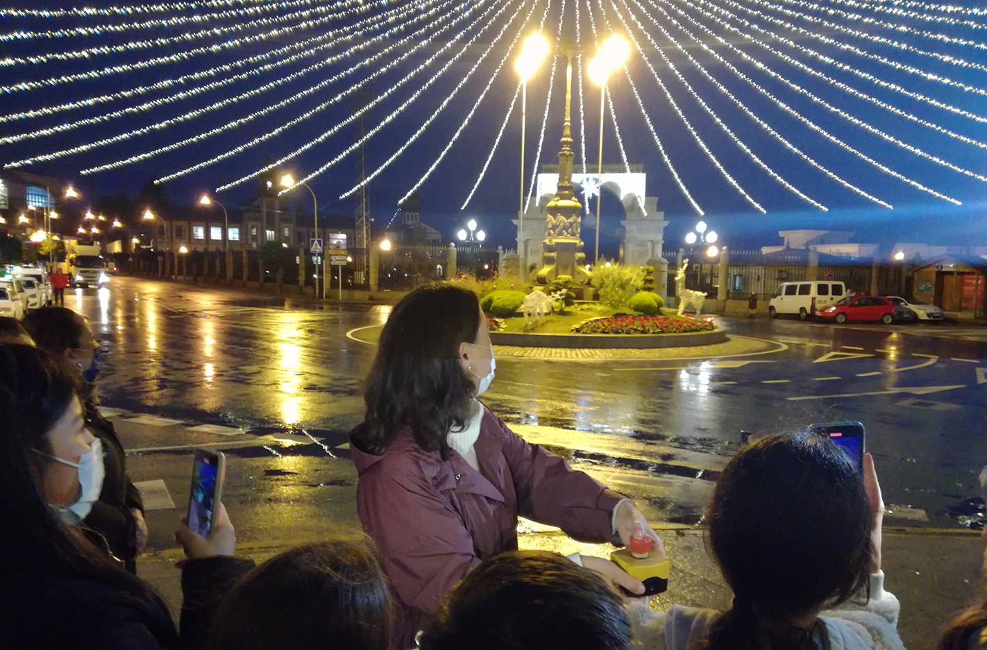 El momento álgido de la jornada estuvo en el instante en que la alcaldesa María Ramallo pulsó el interruptor del alumbrado haciéndose la luz en todo el circuito, empezando por el gran paraguas con centro en la farola de la Plaza de España que resulta espectacular.